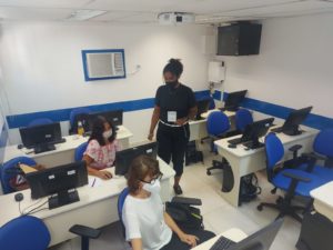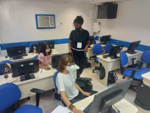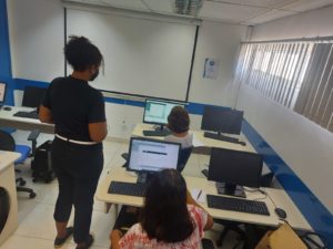No dia 09/12/2021, a profissional Brenda Mendes facilitadora do Prontuário Eletrônico Vitacare, esteve no laboratório de informática do OTICS-Rio Copacabana aplicando os treinamentos do novo prontuário eletrônico, em implantação. Os treinamentos foram divididos em turnos, o que permite capacitar várias categorias de profissionais.