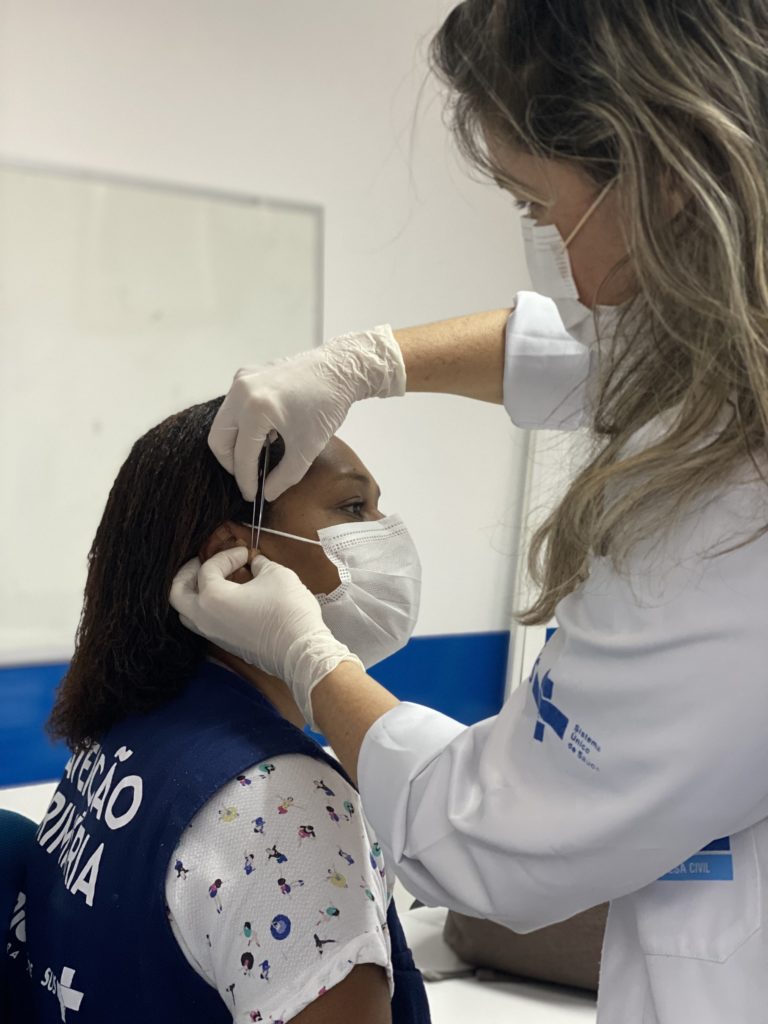 Hoje, 10/02/2022, a OTICS Rio AP 2.1 Copacabana proporcionou aos profissionais da saúde ter sessões de auriculoterapia com Ana Laura Veloso e Sousa, terapeuta ocupacional.