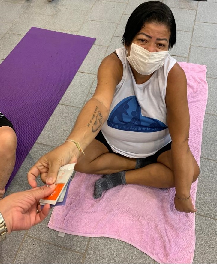Além da aula de Pilates, ministrada pelo profissional de educação física Neydson Muniz, também esteve presente a Assistente Social Zilmar. Foi apresentada a importância do autocuidado, autoconhecimento e a realização dos exames femininos de rotina.