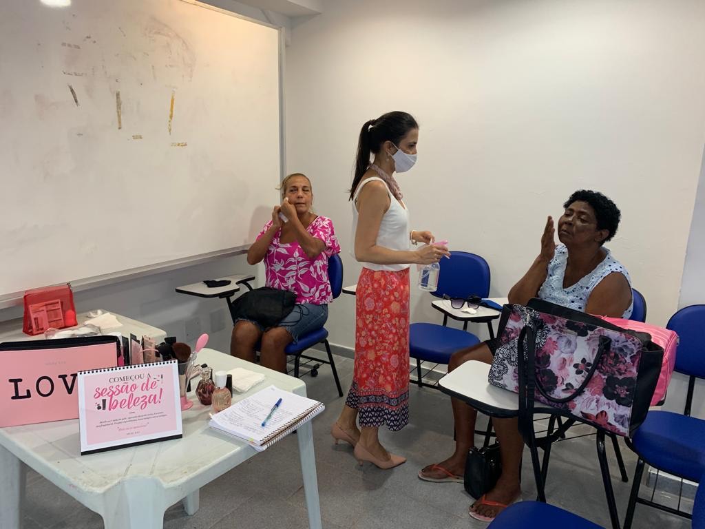 As participantes foram presenteadas com um kit de cuidados com a pele e uma sessão de beleza com maquiagem.