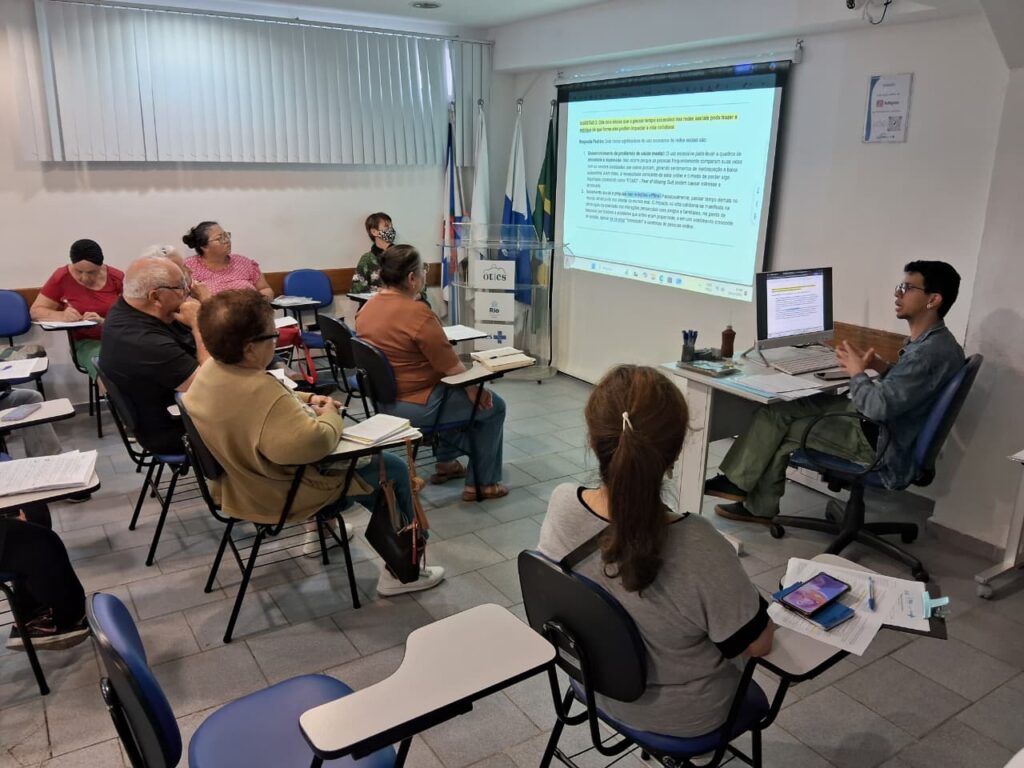 No Auditório da OTICS-Rio Copacabana, na tarde da quinta-feira, dia 23 de outubro de 2025, ocorreu mais um encontro do Curso de Mídias Digitais, conduzido pelo gerente da estação Leandro Vinícius e pelo assistente administrativo Giancarlo Braga. Neste mês, as aulas estão voltadas para o tema redes sociais, com foco em funcionalidades básicas, como criar conta, publicar conteúdos, interagir com amigos e, principalmente, noções de segurança. A iniciativa, voltada especialmente para o público idoso, tem como objetivo principal ensinar os usuários a utilizar melhor seus celulares e aplicativos, promovendo maior independência no dia a dia. Ao aprenderem a manusear smartphones e redes sociais, os idosos passam a executar tarefas simples, como fazer ligações, enviar mensagens, acessar a internet, tirar fotos, configurar alarmes e se comunicar virtualmente, o que contribui significativamente para sua autonomia.