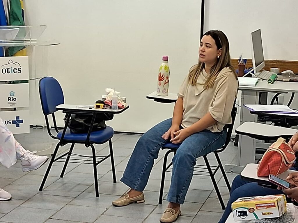 No Auditório da OTICS-Rio Copacabana, na tarde da sexta-feira, dia 24 de outubro de 2025, a enfermeira Ana Carolina conduziu mais uma aula do Curso Mais Saúde com Agente, um curso técnico voltado para os Agentes Comunitários de Saúde (ACS) do CMS João Barros Barreto. A formação tem como objetivo qualificar e valorizar o trabalho desses profissionais, que desempenham papel fundamental na promoção da saúde e na articulação entre a comunidade e os serviços da Atenção Primária.