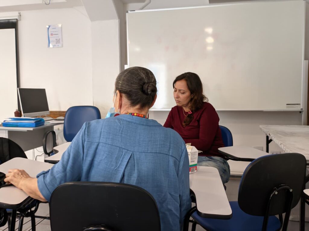 No Auditório da OTICS-Rio Copacabana, na manhã da quarta-feira, dia 29 de outubro de 2025, a fonoaudióloga Carolina Aguilar e a dentista Renata Motta, profissionais do CMS João Barros Barreto, realizaram as entrevistas com os usuários que estão buscando se livrar desse vício tão prejudicial e desejam participar do grupo de tabagismo da unidade de saúde.