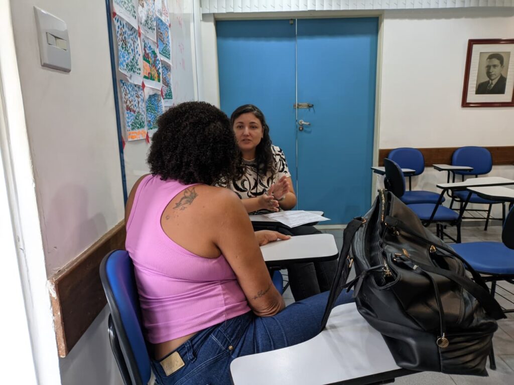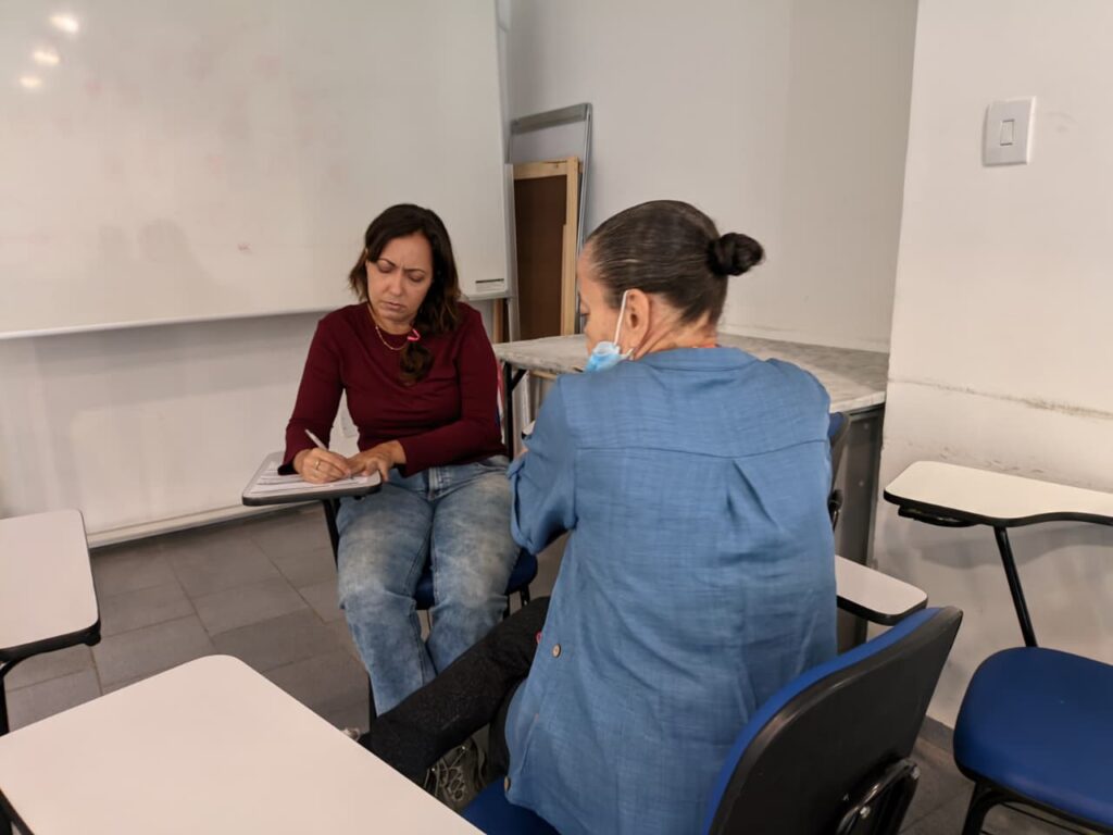 No Auditório da OTICS-Rio Copacabana, na manhã da quarta-feira, dia 29 de outubro de 2025, a fonoaudióloga Carolina Aguilar e a dentista Renata Motta, profissionais do CMS João Barros Barreto, realizaram as entrevistas com os usuários que estão buscando se livrar desse vício tão prejudicial e desejam participar do grupo de tabagismo da unidade de saúde.