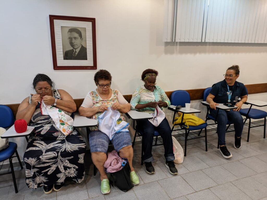 No Auditório da OTICS-Rio Copacabana, na tarde da segunda-feira, dia 3 de novembro de 2025, foi realizada mais uma sessão do Grupo de Convivência do CMS João Barros Barreto. Conduzido pela assistente social da unidade, Zilmar Gomes, pela agente comunitária de saúde Mirian, e pela cirurgiã-dentista Érika, o encontro reuniu senhoras da comunidade em uma agradável tarde de atividades manuais, como tricô e crochê, proporcionando um momento de interação, acolhimento e bem-estar entre as participantes.