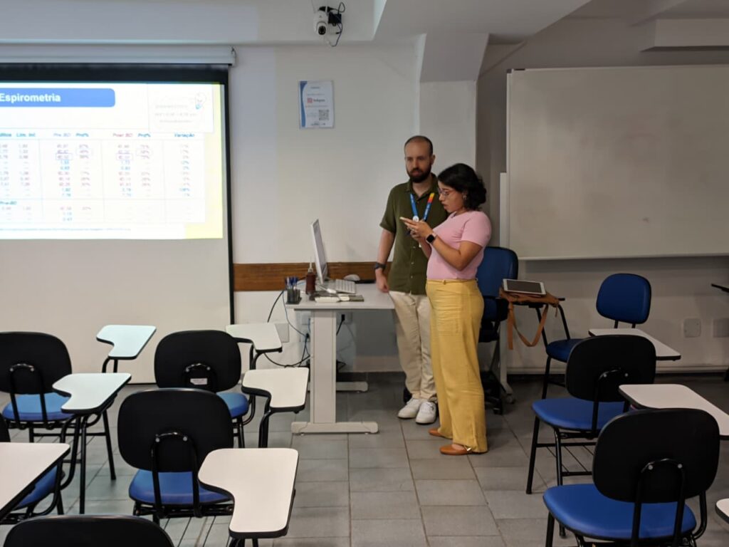 No Auditório da OTICS-Rio Copacabana, na tarde da quinta-feira, dia 13 de novembro de 2025, os alunos do segundo ano do Programa de Residência em Medicina de Família e Comunidade (PRMFC) se reuniram com os preceptores Pedro Guimarães e Kiane Werneck, para assistir a uma importante aula sobre o tema “(DPOC) Doença Pulmonar Obstrutiva Crônica”.