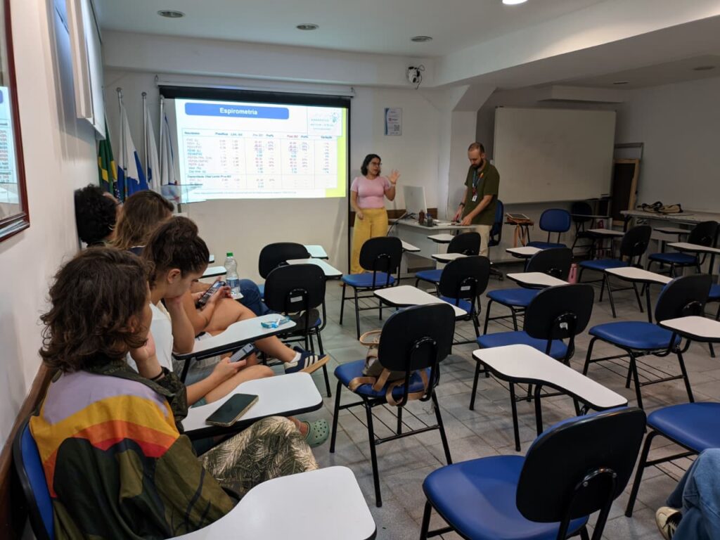 No Auditório da OTICS-Rio Copacabana, na tarde da quinta-feira, dia 13 de novembro de 2025, os alunos do segundo ano do Programa de Residência em Medicina de Família e Comunidade (PRMFC) se reuniram com os preceptores Pedro Guimarães e Kiane Werneck, para assistir a uma importante aula sobre o tema “(DPOC) Doença Pulmonar Obstrutiva Crônica”.
