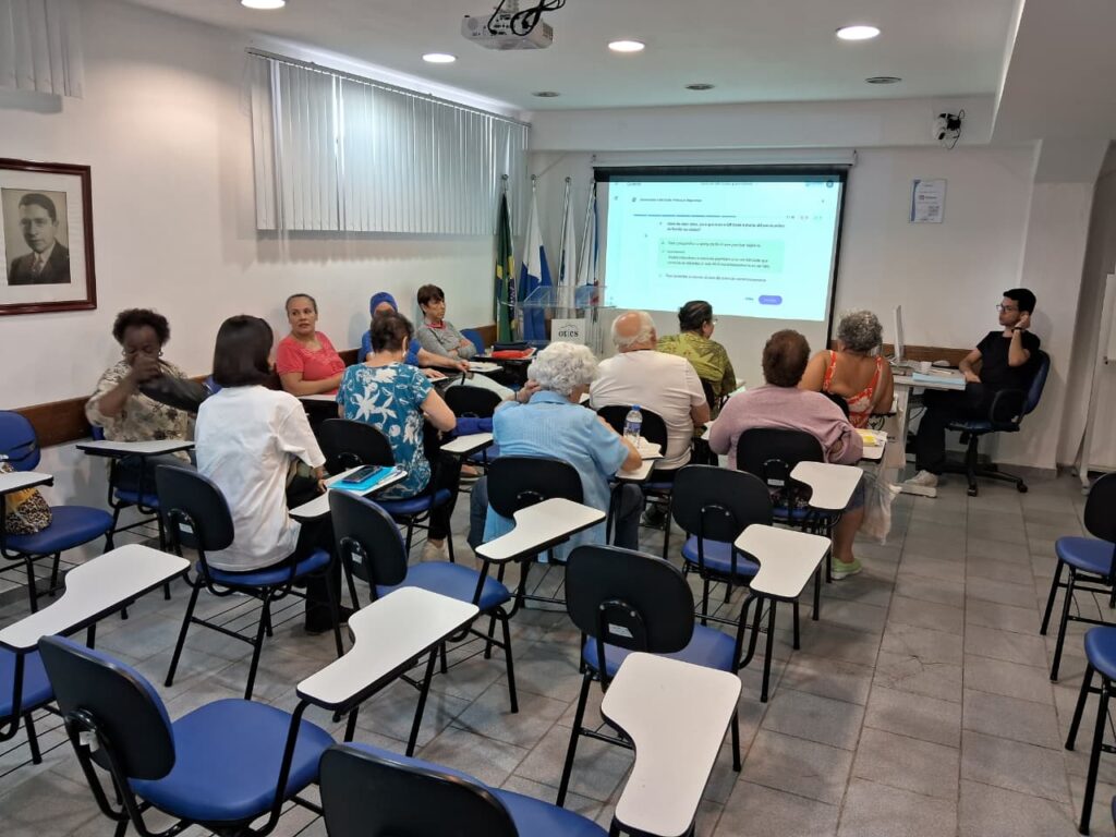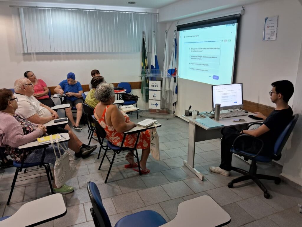 Ao final, houve um momento de perguntas e esclarecimentos, no qual os idosos puderam compartilhar dúvidas e experiências pessoais sobre o uso do aplicativo “minhasaúde.rio”. A troca de informações contribuiu para o fortalecimento da confiança no uso dessa rede social, reafirmando o compromisso do curso em promover não apenas o conhecimento técnico, mas também a valorização da autonomia digital na terceira idade.