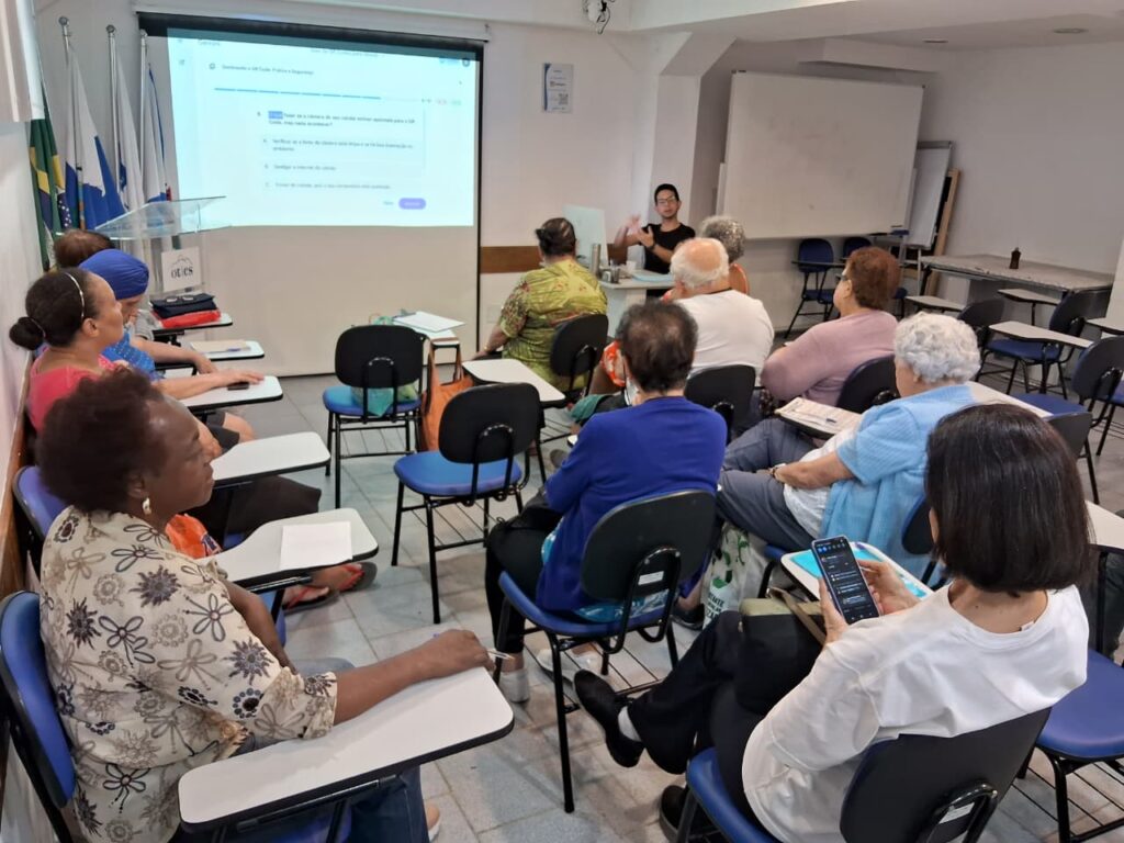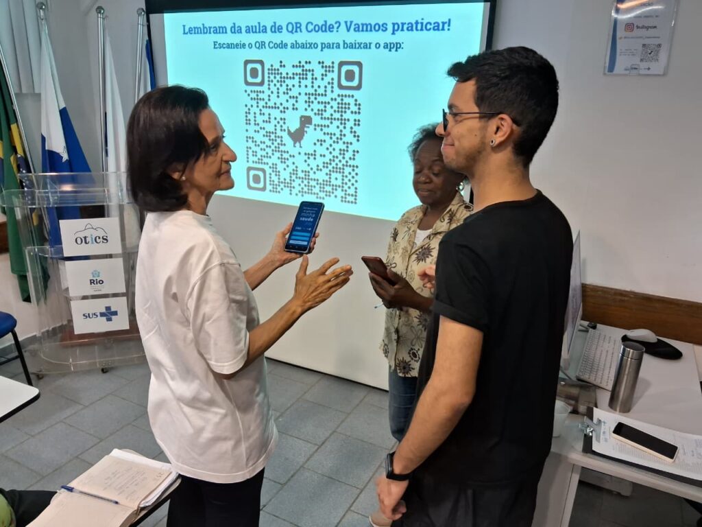 No Auditório da OTICS-Rio Copacabana, na tarde da quinta-feira, dia 4 de dezembro de 2025, ocorreu mais um encontro do Curso de Mídias Digitais, hoje conduzido pelo assistente administrativo Giancarlo Braga. A aula de hoje foi sobre o aplicativo “minhasaúde.rio”, explicando o que é e como utilizar no celular com facilidade, sempre com foco em segurança e privacidade. A iniciativa, voltada especialmente para o público idoso, tem como objetivo principal ensinar os usuários a utilizar melhor seus celulares e aplicativos, promovendo maior independência no dia a dia. Ao aprenderem a manusear smartphones e redes sociais, os idosos passam a executar tarefas simples, como fazer ligações, enviar mensagens, acessar a internet, tirar fotos, configurar alarmes e se comunicar virtualmente, o que contribui significativamente para sua autonomia.