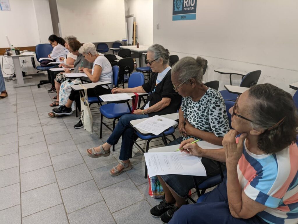 Na manhã da quinta-feira, dia 4 de dezembro de 2025, no Auditório da OTICS-Rio Copacabana, a fonoaudióloga Carolina Aguilar, profissional do CMS João Barros Barreto, reuniu-se com um grupo de idosos para a realização de atividades voltadas à estimulação cognitiva. O encontro teve como principal objetivo fortalecer as funções cognitivas dos participantes, promovendo maior autonomia e qualidade de vida.