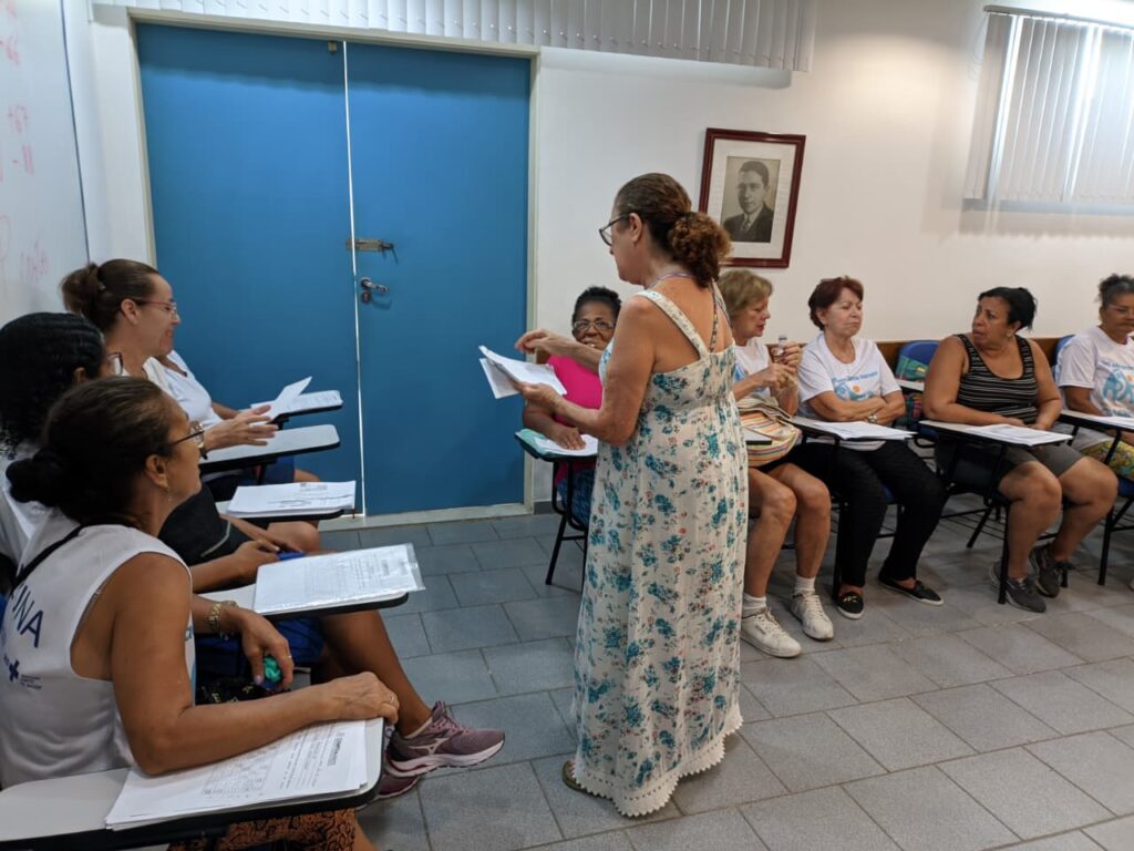 Na manhã da quinta-feira, dia 11 de dezembro de 2025, no Auditório da OTICS-Rio Copacabana, a fonoaudióloga Carolina Aguilar, profissional do CMS João Barros Barreto, reuniu-se com um grupo de idosos para a realização de atividades voltadas à estimulação cognitiva. O encontro teve como principal objetivo fortalecer as funções cognitivas dos participantes, promovendo maior autonomia e qualidade de vida.
