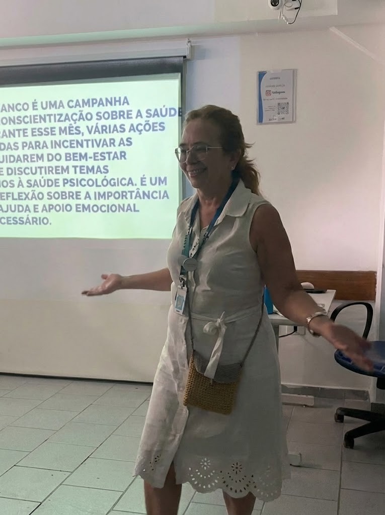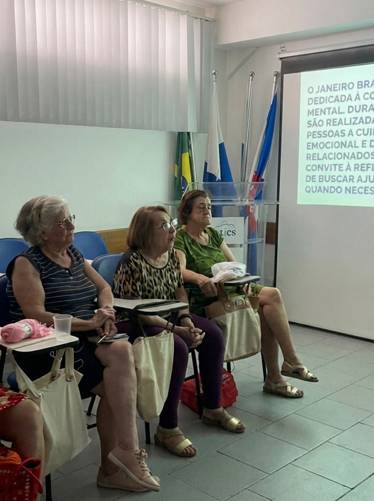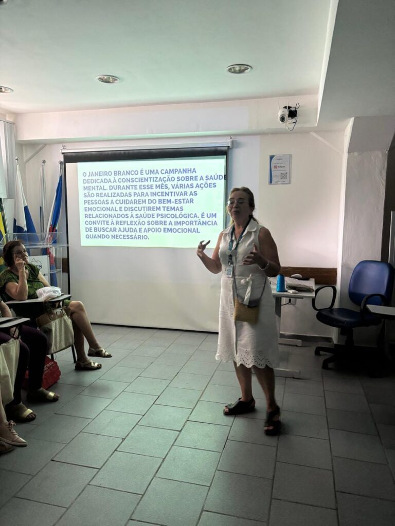 A penúltima semana de janeiro foi marcada por uma palestra dedicada à campanha Janeiro Branco, que ocorreu no Auditório da OTICS-Rio Copacabana. A atividade foi conduzida pela assistente social da unidade, Zilmar Gomes, e reuniu participantes do Grupo de Convivência do CMS João Barros Barreto em um espaço de diálogo, orientação e acolhimento voltado à promoção da saúde mental.