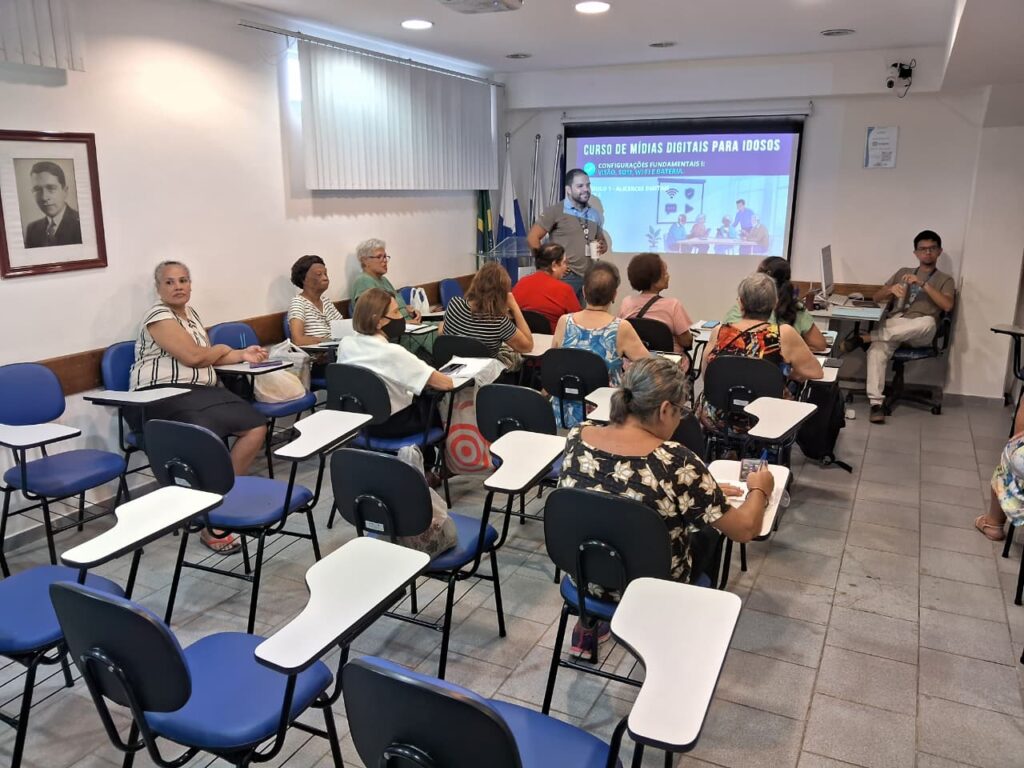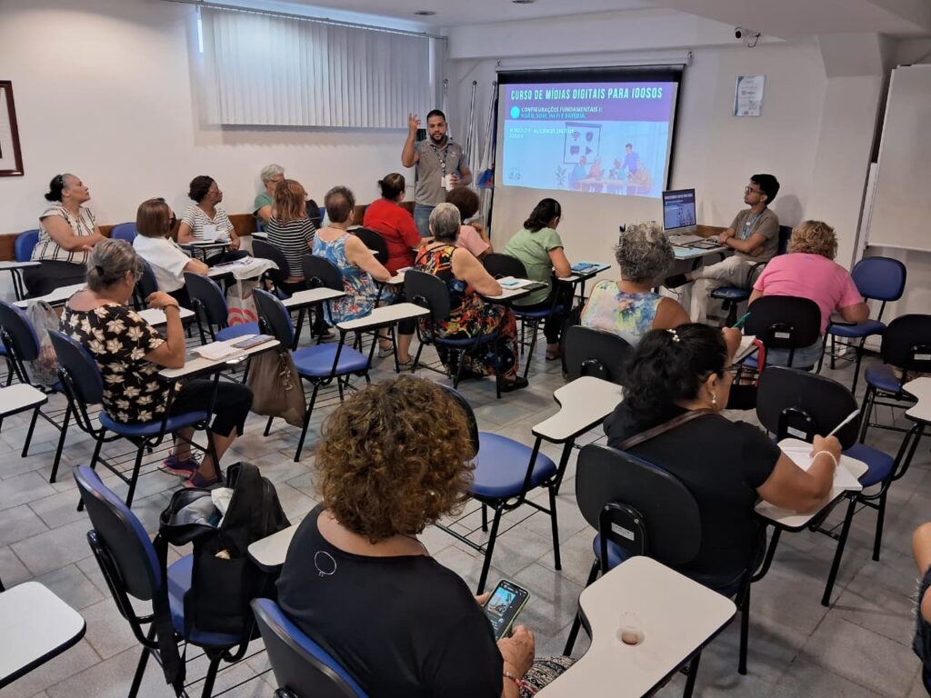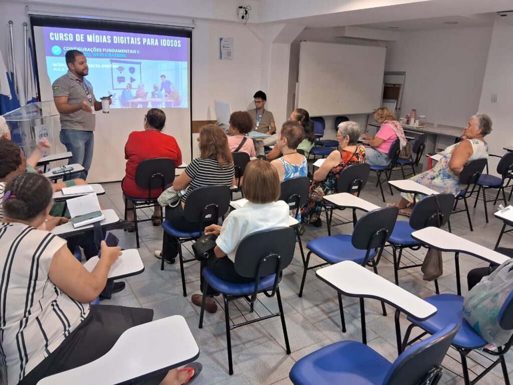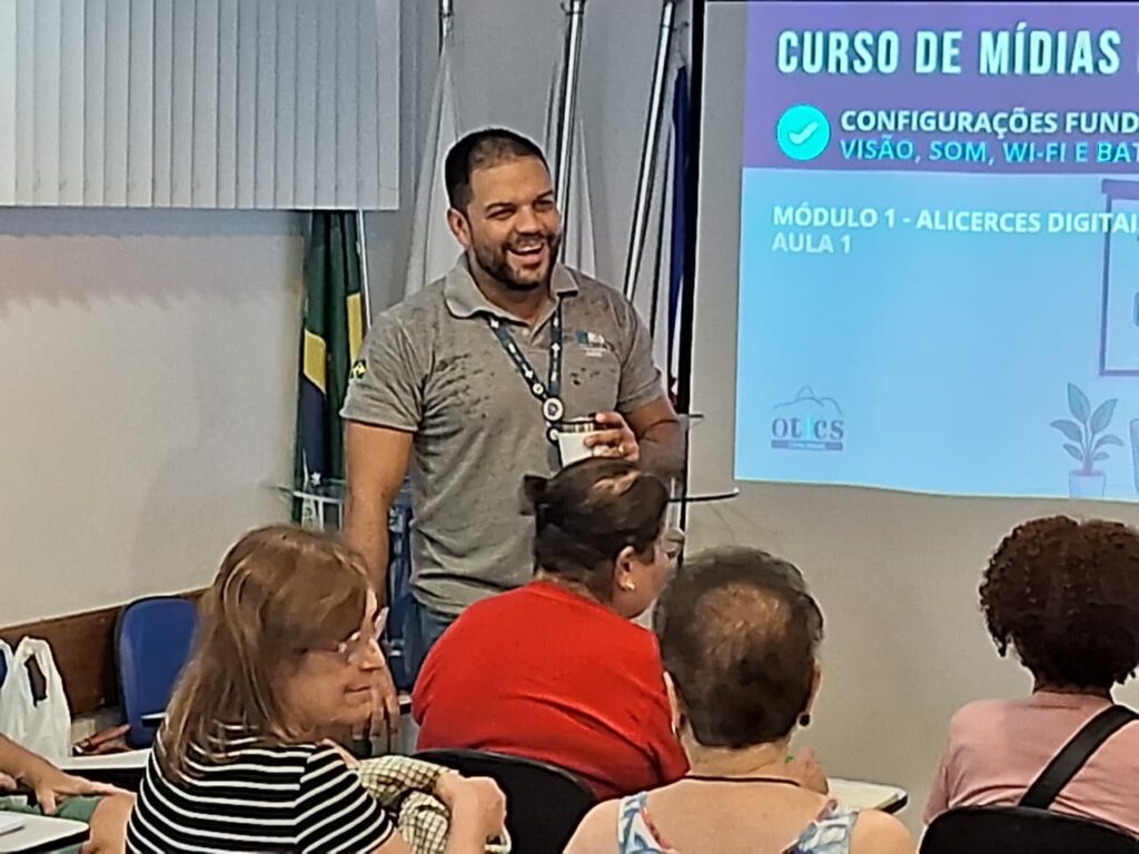 No Auditório da OTICS-Rio Copacabana, na tarde da quarta-feira, dia 4 de março de 2026, ocorreu o segundo encontro do ano do Curso de Mídias Digitais, conduzido pelo gerente da estação Leandro Vinícius e pelo assistente administrativo Giancarlo Braga. A iniciativa, voltada especialmente para o público idoso, tem como objetivo principal ensinar os usuários a utilizar melhor seus celulares e aplicativos, promovendo maior independência no dia a dia. Ao aprenderem a manusear smartphones e redes sociais, os idosos passam a executar tarefas simples, como fazer ligações, enviar mensagens, acessar a internet, tirar fotos, configurar alarmes e se comunicar virtualmente, o que contribui significativamente para sua autonomia.