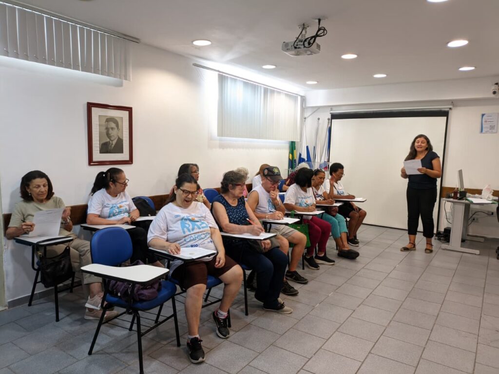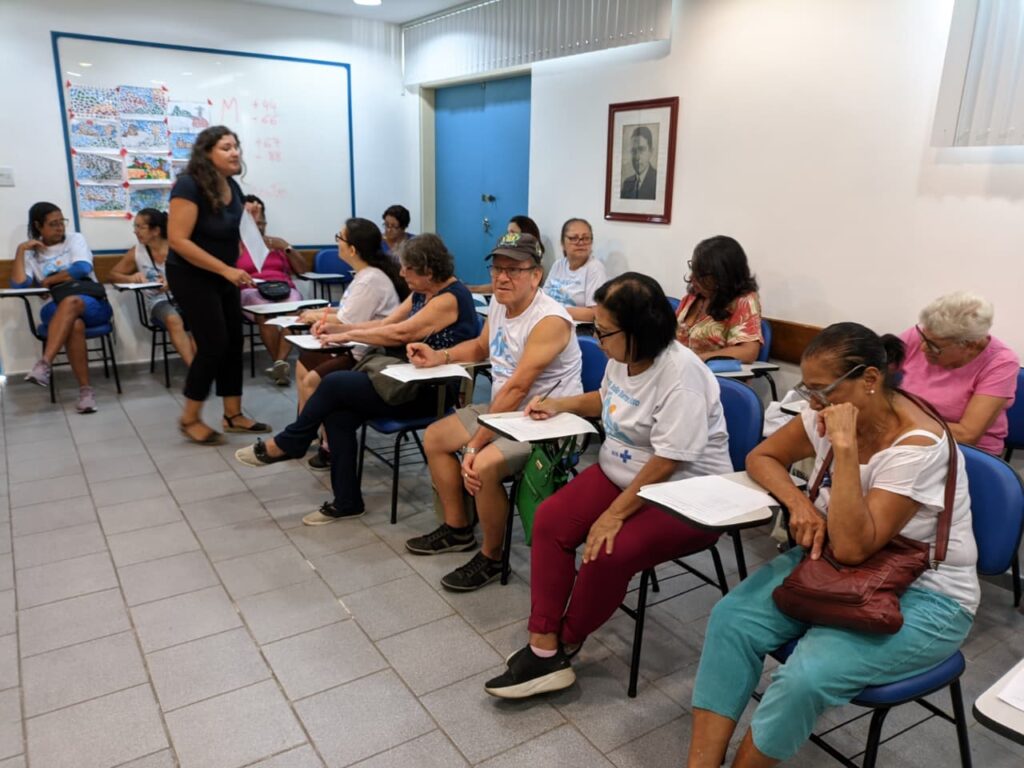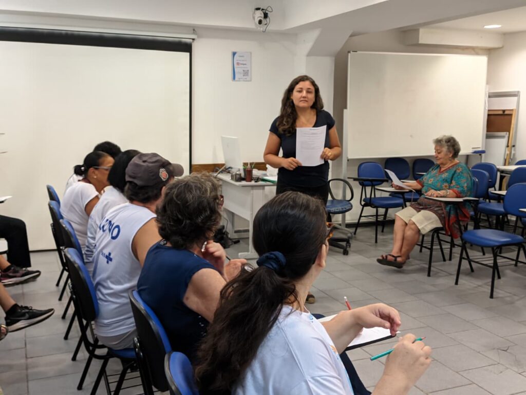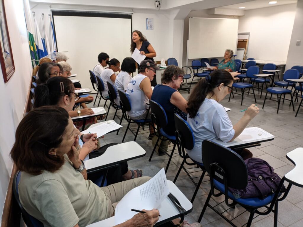 Na manhã da quinta-feira, 5 de março de 2026, no Auditório da OTICS-Rio Copacabana, a fonoaudióloga Carolina Aguilar, profissional do CMS João Barros Barreto, conduziu mais um encontro com o grupo de idosos, promovendo atividades voltadas à estimulação cognitiva. A iniciativa tem como objetivo fortalecer as funções cognitivas dos participantes, contribuindo para a ampliação da autonomia, do bem-estar e da qualidade de vida.