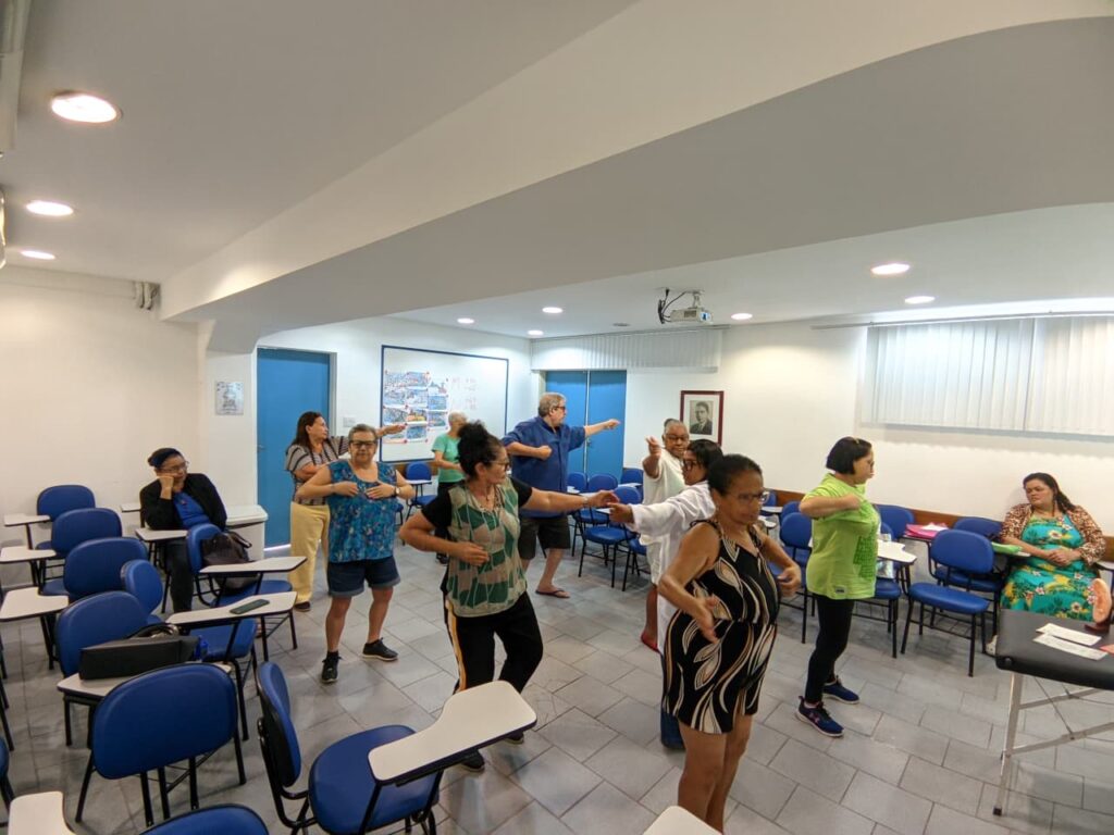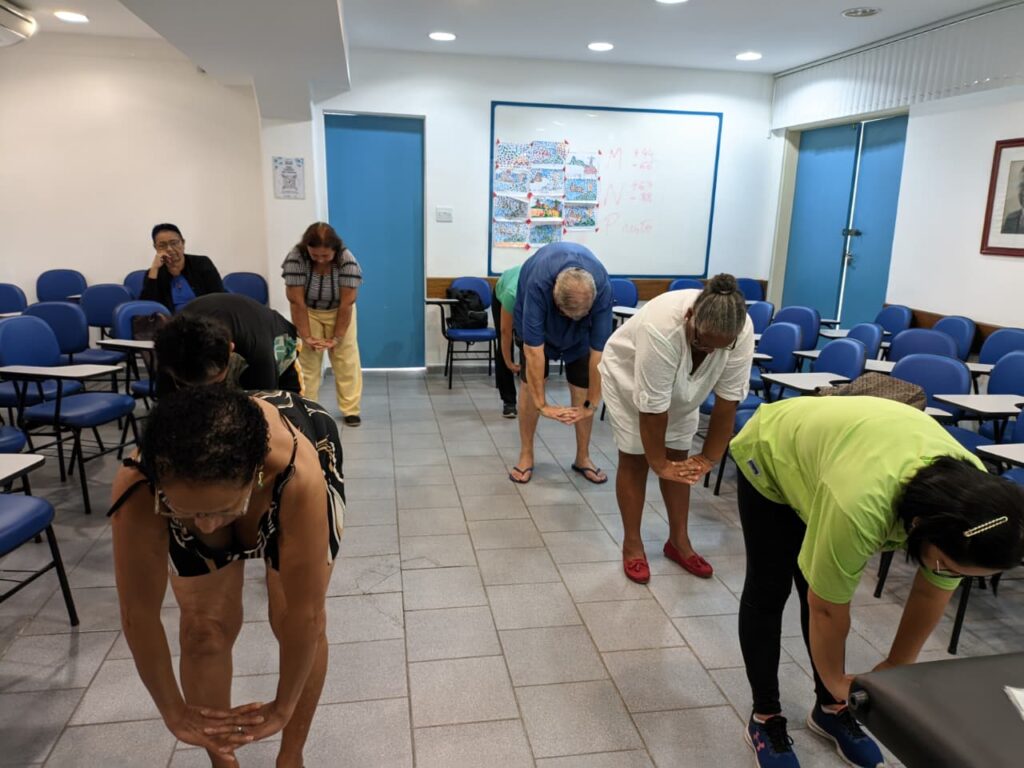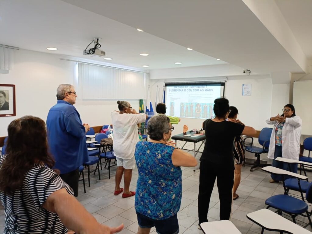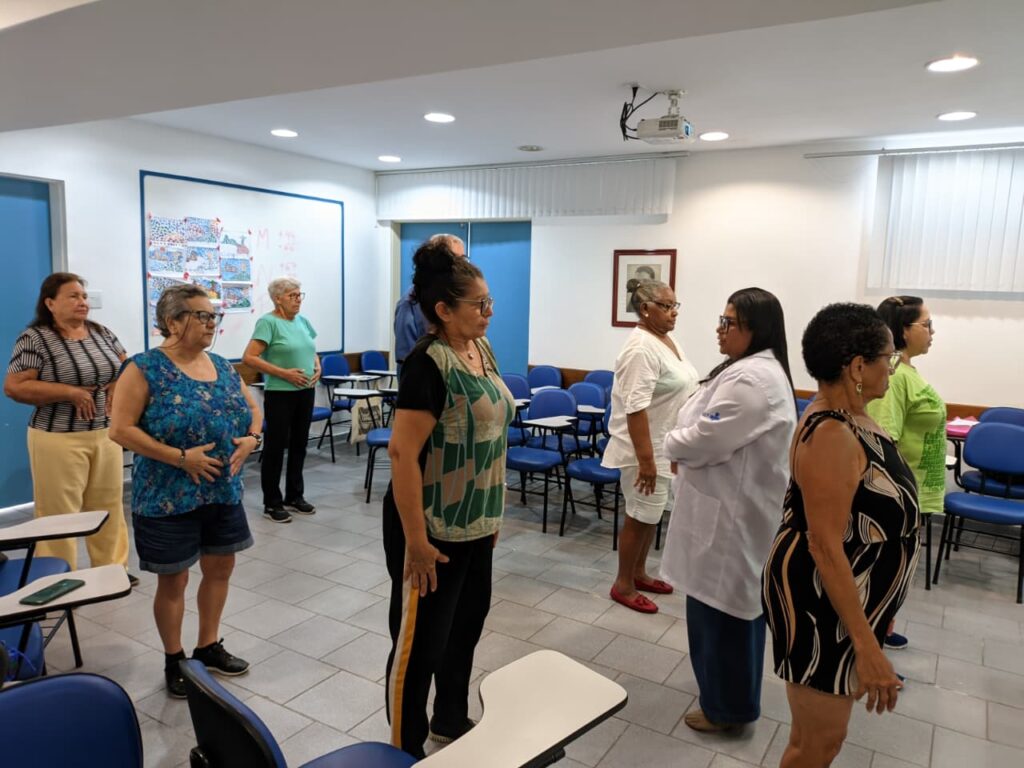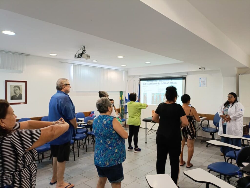 No Auditório da OTICS-Rio Copacabana, na manhã da terça-feira, dia 10 de março de 2026, o grupo de fisioterapia do CMS João Barros Barreto realizou mais uma sessão. A fisioterapeuta Patrícia Amettla conduziu atividades voltadas para a melhoria da mobilidade, alívio de dores e aumento da funcionalidade dos pacientes, em sua maioria idosos. O objetivo foi ajudar esses pacientes a viverem de forma mais saudável e independente. Além disso, foi realizada a prática de ventosa em alguns pacientes, utilizando dispositivos de sucção aplicados à pele com objetivos terapêuticos, como alívio de dores musculares e melhora da circulação sanguínea.
