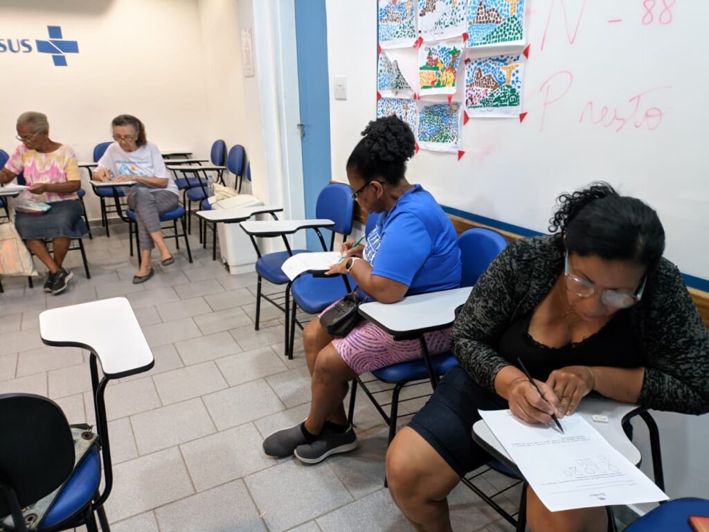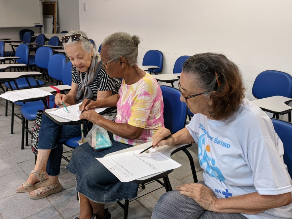 Na manhã da quinta-feira, 19 de março de 2026, no Espaço de Convivência da OTICS-Rio Copacabana, a fonoaudióloga Carolina Aguilar, profissional do CMS João Barros Barreto, conduziu mais um encontro com o grupo de idosos, promovendo atividades voltadas à estimulação cognitiva. A iniciativa tem como objetivo fortalecer as funções cognitivas dos participantes, contribuindo para a ampliação da autonomia, do bem-estar e da qualidade de vida.