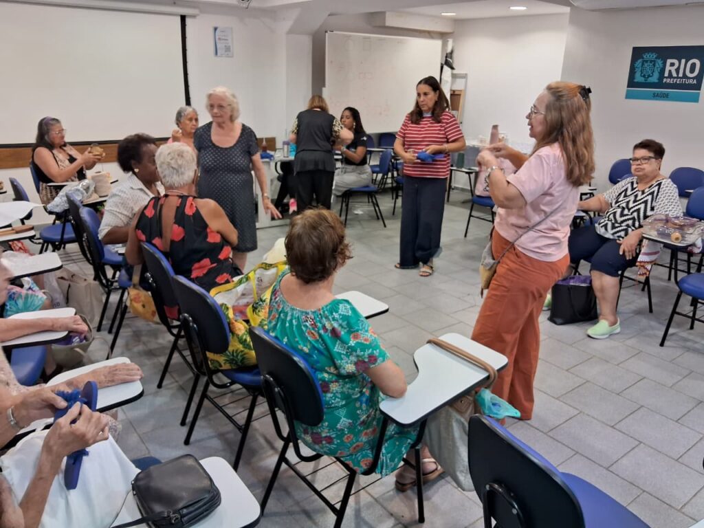 No Auditório da OTICS-Rio Copacabana, na tarde da segunda-feira, dia 23 de março de 2026, foi realizada mais uma sessão do Grupo de Convivência do CMS João Barros Barreto. Conduzido pela assistente social da unidade, Zilmar Gomes, juntamente com a terapeuta ocupacional Isabel e a agente comunitária de saúde Marcia, o encontro reuniu senhoras da comunidade em uma agradável tarde de atividades manuais, como tricô e crochê, proporcionando um momento de interação, acolhimento e bem-estar entre as participantes.