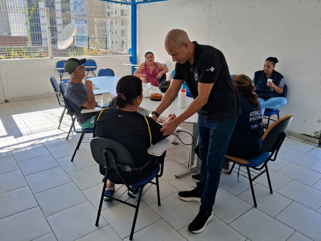 No Espaço de Convivêcia da OTICS-Rio Copacabana, na manhã da terça-feira, dia 24 de março de 2026, ocorreu o Grupo de Hiperdia da Equipe Aimoré. O encontro foi conduzido pelo enfermeiro Júlio Cezar, em parceria com a cirurgiã-dentista Mariana, e contou com o apoio fundamental da Agente Comunitária de Saúde Eliane, que atuou na organização e acolhimento dos participantes. A integração entre os profissionais evidenciou o trabalho multiprofissional da unidade, essencial para a construção de estratégias eficazes de prevenção e controle de doenças crônicas, como a hipertensão arterial e o diabetes.