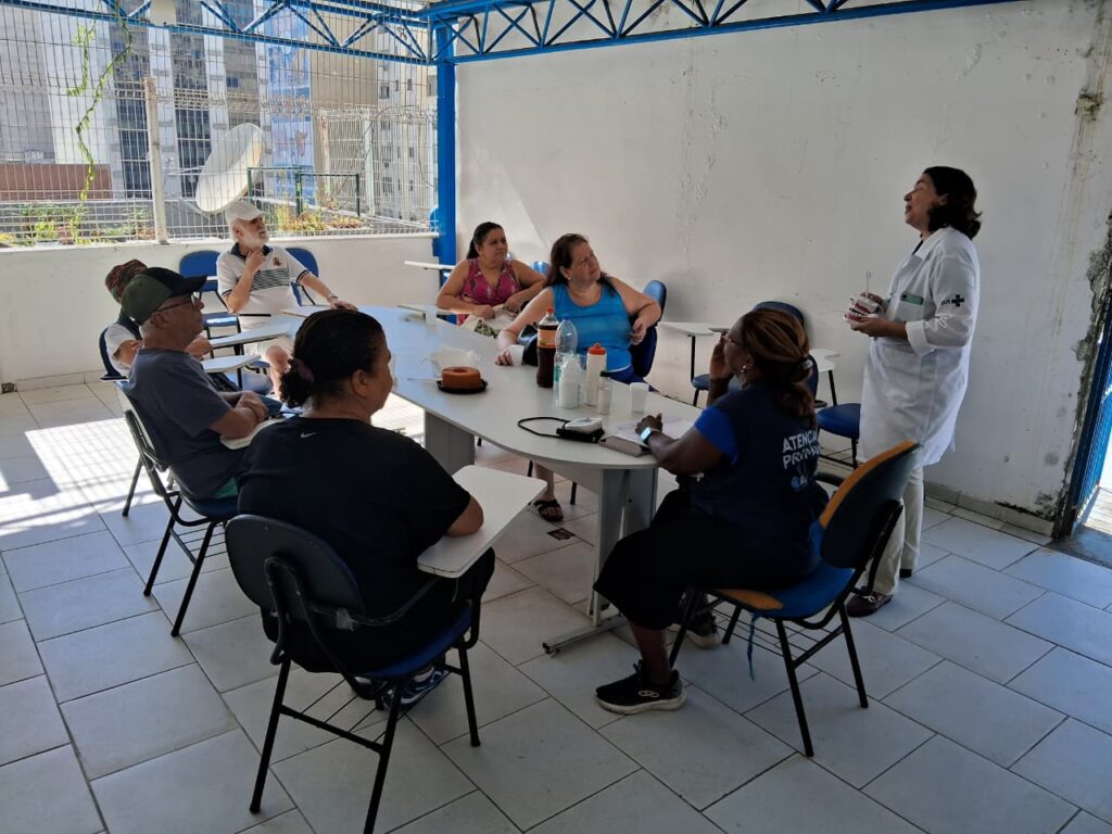 Além do monitoramento dos parâmetros vitais, a equipe promoveu orientações educativas voltadas para o cotidiano das pessoas com hipertensão. Foram abordados temas como alimentação equilibrada, com destaque para a redução do consumo de sal, a importância de uma boa escovação e cuidados com a saúde bucal, a prática regular de atividades físicas, a ingestão adequada de água e o controle do peso corporal. Também foram apresentadas informações sobre os medicamentos disponibilizados pela unidade, reforçando a importância do uso correto e contínuo conforme prescrição.