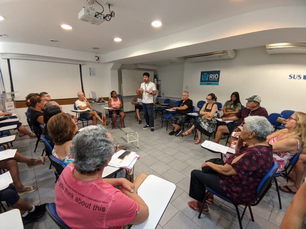 Na manhã da quarta-feira, dia 25 de março de 2026, no Auditório da OTICS-Rio Copacabana, foi realizado um Grupo de Diabetes com pacientes vinculados à equipe Curumim, organizado pela enfermeira Rafaela Lopes, com o objetivo de promover orientações em saúde, fortalecer o acompanhamento dos usuários e incentivar o autocuidado no manejo do diabetes.
