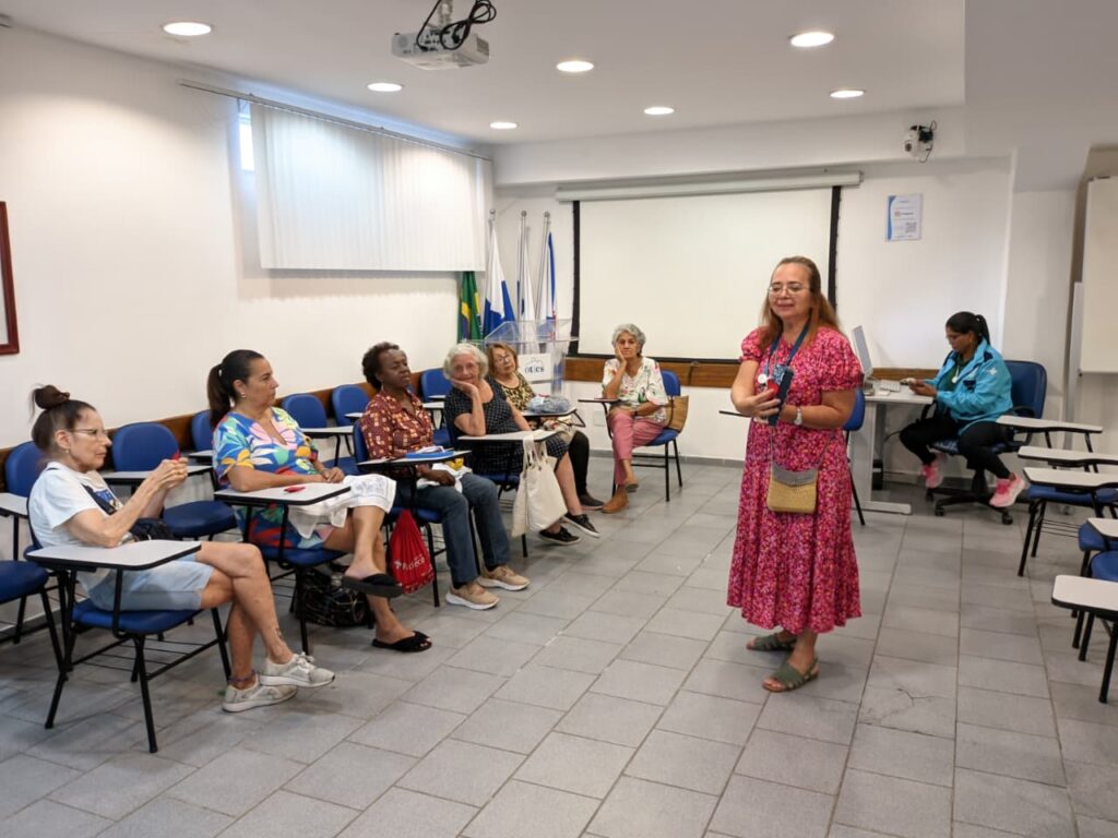 No Auditório da OTICS-Rio Copacabana, na tarde da segunda-feira, dia 6 de abril de 2026, foi realizada mais uma sessão do Grupo de Convivência do CMS João Barros Barreto. Conduzido pela assistente social da unidade, Zilmar Gomes, juntamente com a agente comunitária de saúde Marcia Cunha, o encontro reuniu senhoras da comunidade em uma agradável tarde de atividades manuais, como tricô e crochê, proporcionando um momento de interação, acolhimento e bem-estar entre as participantes.