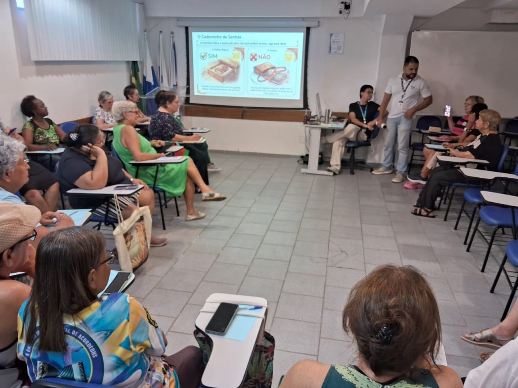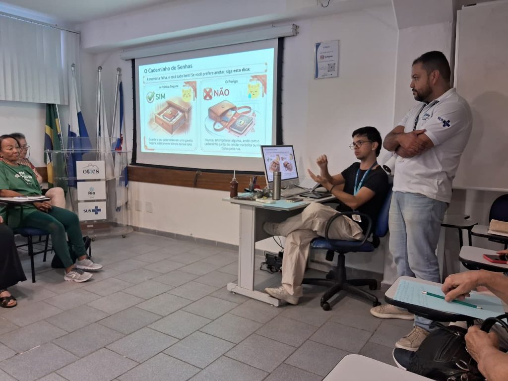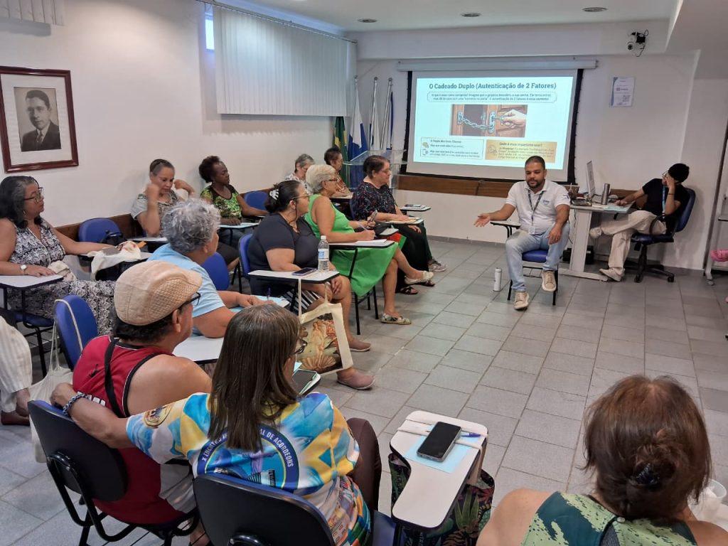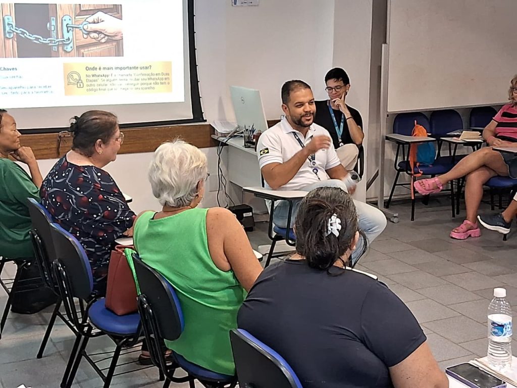 No Auditório da OTICS-Rio Copacabana, na tarde da quinta-feira, dia 10 de abril de 2026, ocorreu mais um encontro do Curso de Mídias Digitais, conduzido pelo gerente da estação Leandro Vinícius e pelo assistente administrativo Giancarlo Braga. A iniciativa, voltada especialmente para o público idoso, tem como objetivo principal ensinar os usuários a utilizar melhor seus celulares e aplicativos, promovendo maior independência no dia a dia. Ao aprenderem a manusear smartphones e redes sociais, os idosos passam a executar tarefas simples, como fazer ligações, enviar mensagens, acessar a internet, tirar fotos, configurar alarmes e se comunicar virtualmente, o que contribui significativamente para sua autonomia.