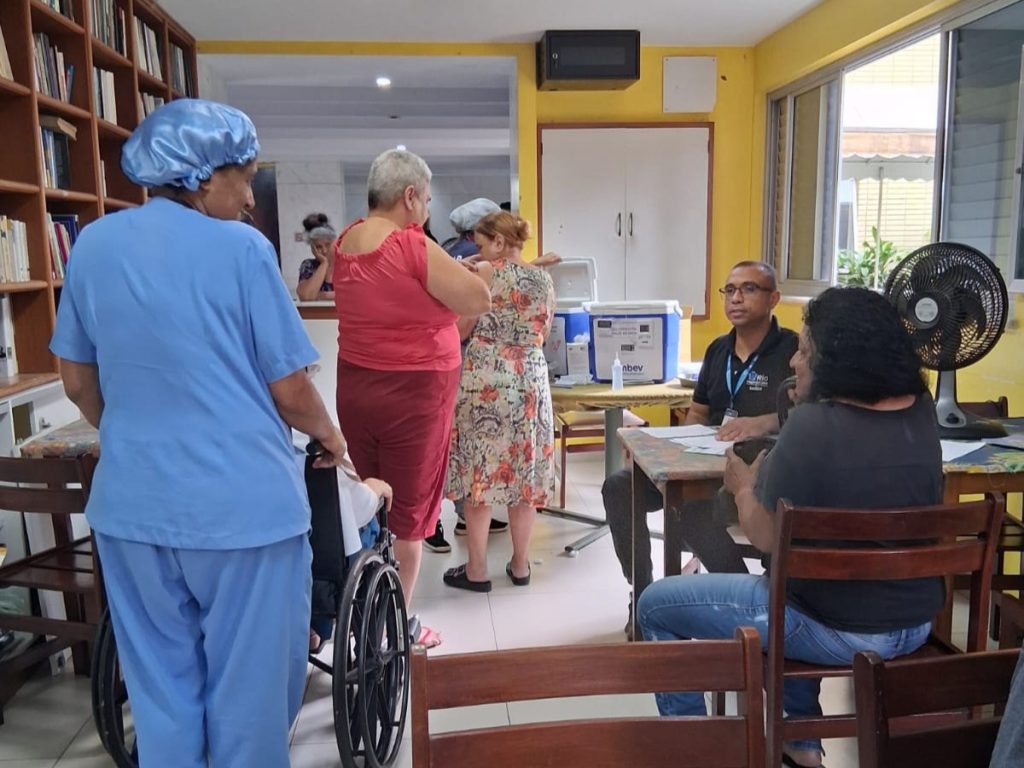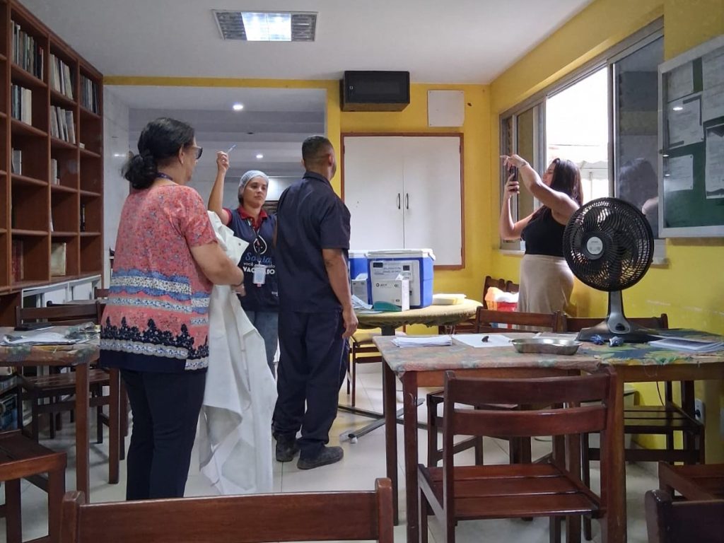 Na manhã da sexta-feira, dia 10 de abril de 2026, a equipe Apoena do CMS João Barros Barreto realizou uma importante ação de vacinação contra influenza e covid-19, direcionada aos usuários idosos pertencentes ao Lar D. Pedro V, uma Instituição de Longa Permanência localizada em Copacabana. A iniciativa contou com a participação dos Agentes Comunitários de Saúde Isabel Cristina de Jesus Felix, Katia Maria Carvalho Ribeiro e Mirta Raquel Balsemão, além do enfermeiro da Estratégia de Saúde da Família Jean Carlos de Oliveira e a técnica de enfermagem, Érika Barroso.