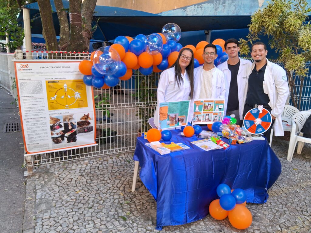 Na manhã da sexta-feira, dia 6 de junho de 2025, acadêmicos do curso de Medicina Veterinária do Centro Universitário Augusto Motta (UNISUAM) realizaram uma importante ação educativa na entrada do CMS João Barros Barreto. Os alunos Giancarlo Braga, Simone Fernandes, Letícia Gomes, Vitoria Maria, Isabela Borges, Inácio Jhonata e Renato Capano desenvolveram e apresentaram um trabalho voltado à conscientização sobre a Esporotricose Felina. A atividade teve como foco principal desmistificar essa zoonose, causada por fungos do gênero Sporothrix, frequentemente — e de forma equivocada — atribuída exclusivamente aos gatos como principais transmissores da doença.