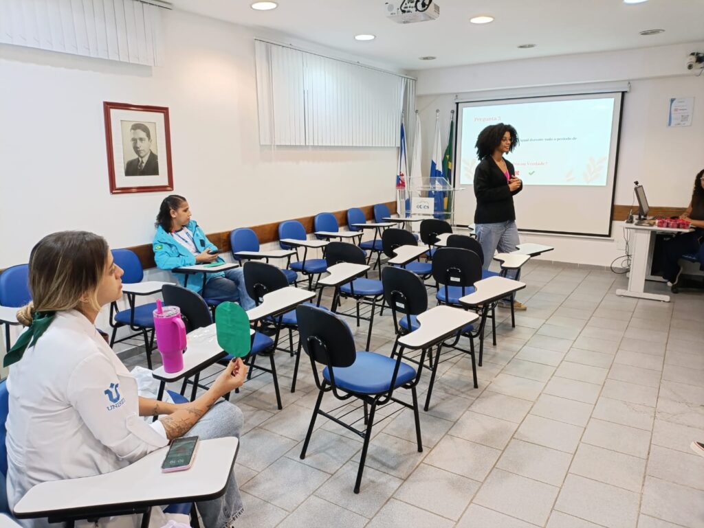 Durante a roda de conversa, os participantes foram convidados a refletir sobre os desafios enfrentados pelas gestantes e puérperas, bem como a importância do papel do profissional de enfermagem na promoção de uma gestação saudável, tanto no aspecto físico quanto emocional. O momento foi marcado por um bate-papo dinâmico e interativo, onde os acadêmicos puderam esclarecer dúvidas, compartilhar percepções e aprofundar seus conhecimentos com base na experiência prática das facilitadoras.