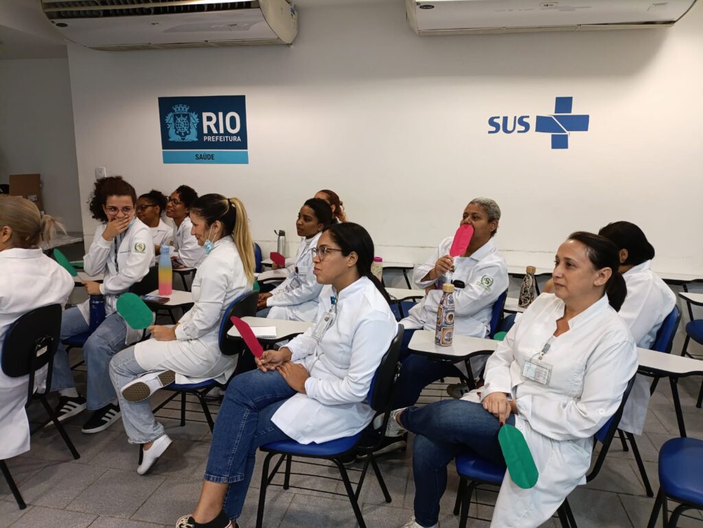 No Auditório da OTICS-Rio Copacabana, na tarde da sexta-feira, dia 6 de junho de 2025, foi realizada mais um encontro do Curso Mais Saúde com Agente, um curso técnico voltado para os Agentes Comunitários de Saúde (ACS) do CMS João Barros Barreto. A formação conduzida pela enfermeira Ana Carolina, tem como objetivo qualificar e valorizar o trabalho desses profissionais, que desempenham papel fundamental na promoção da saúde e na articulação entre a comunidade e os serviços da Atenção Primária.