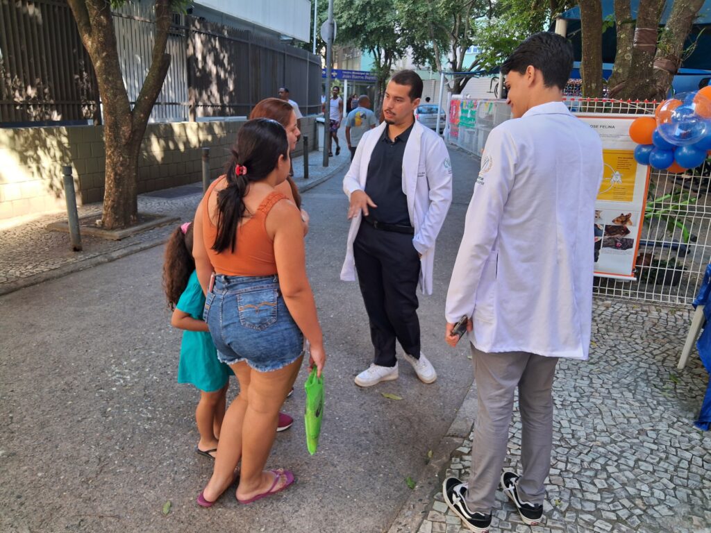 Na manhã da sexta-feira, dia 6 de junho de 2025, acadêmicos do curso de Medicina Veterinária do Centro Universitário Augusto Motta (UNISUAM) realizaram uma importante ação educativa na entrada do CMS João Barros Barreto. Os alunos Giancarlo Braga, Simone Fernandes, Letícia Gomes, Vitoria Maria, Isabela Borges, Inácio Jhonata e Renato Capano desenvolveram e apresentaram um trabalho voltado à conscientização sobre a Esporotricose Felina. A atividade teve como foco principal desmistificar essa zoonose, causada por fungos do gênero Sporothrix, frequentemente — e de forma equivocada — atribuída exclusivamente aos gatos como principais transmissores da doença.