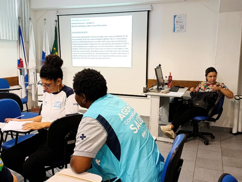 O curso é ofertado na modalidade de Ensino a Distância (EAD), com encontros presenciais quinzenais, sempre às sextas-feiras, proporcionando maior flexibilidade para que os agentes possam conciliar o aprendizado com as demandas do território. No encontro, os participantes aprofundaram o conhecimento sobre a estrutura do curso e tiraram dúvidas relacionadas à plataforma de ensino, à metodologia e ao andamento das atividades propostas.