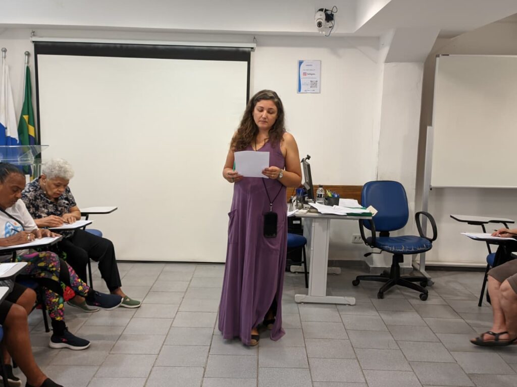 Na manhã da quinta-feira, dia 16 de outubro de 2025, no Auditório da OTICS-Rio Copacabana, a fonoaudióloga Carolina Aguilar, profissional do CMS João Barros Barreto, reuniu-se com um grupo de idosos para a realização de atividades voltadas à estimulação cognitiva. O encontro teve como principal objetivo fortalecer as funções cognitivas dos participantes, promovendo maior autonomia e qualidade de vida.