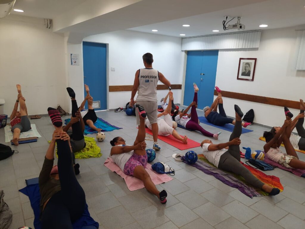 Na tarde desta quarta-feira, dia 25/01/2013, no auditório da OTICS-Rio Copacabana, ocorreu mais uma aula de pilates e de exercícios de alongamento físico do Programa Academia Carioca, ministrada pelo profissional de educação de física do CMS João Barros Barreto, Neydson Muniz.