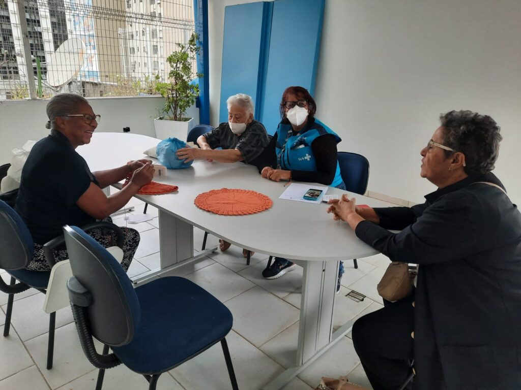 No Espaço de Convivência da OTICS-Rio Copacabana, foi realizado nesta tarde de segunda-feira, dia 07/11/2022, mais um encontro do Grupo de Convivência, liderado pela assistente social do CMS João Barros Barreto, Zilmar. Este encontro tem a intenção de reunir não só senhoras, mas também diferentes tipos de idades e gêneros, para uma troca de informações e experiências sobre vida, e também treinamento de novos profissionais da área. Há diálogos sobre conhecimentos pessoais, momentos marcantes e aprendizados. Assim como, também, uma aula sobre tricô e crochê entre as senhoras presentes.