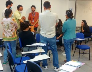 No Espaço de Convivência da OTICS Rio AP 2.1 – Copacabana, estiveram reunidos hoje, 14/06/2022, o educador físico Neydson Muniz junto com suas alunas da Academia Carioca.